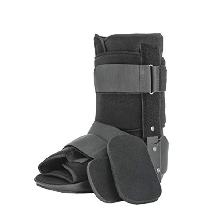 Swede-O® short walking boot helps immobilize the ankle and is ideal for severe ankle sprains, stable ankle fractures, post-surgery and post-cast recovery. Studies show that bearing weight on a stable injury helps facilitate recovery, allowing the patient to return to normal activity at a faster rate. Designed with a non-slip rocker bottom and low profile heel to promote natural gait. Shock absorbing, closed cell foam insole and heel cushion absorb and dissipate the impact of heel strike when walking. A wide foot bed provides increased stability and accommodates for edema and bandage while a deluxe foam liner provides comfort. Swede-O® walking boot is durable, lightweight and includes fitting pads to accommodate extra space around the ankle, heel or leg. Anatomically contoured uprights provide a comfortable fit. Bilateral design fits right or left foot.